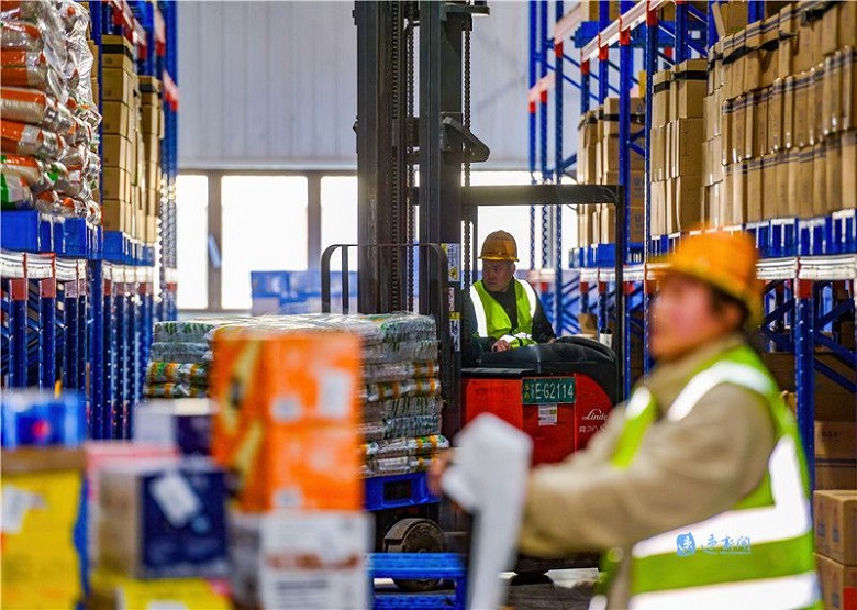 近日,宿遷經(jīng)開區(qū)江蘇通湖物流園內(nèi),工作人員正在有序作業(yè),運(yùn)輸車輛來回穿梭,一派繁忙景象。