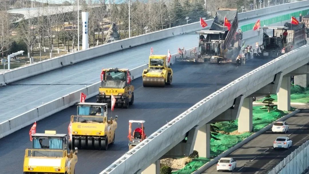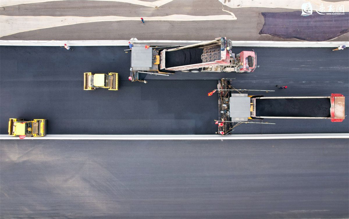 作為路面工程中質量要求最高的一道工序,也是主體工程的最后一道工序,瀝青攤鋪過程對標準化作業(yè)要求非常高。從瀝青混合料的拌合、運輸?shù)綌備仭⒛雺?,項目部統(tǒng)籌策劃,高效推進,做到各道工序整體協(xié)調、有序配合。根據(jù)現(xiàn)場機械和人員安排,下面層瀝青攤鋪以每天1公里左右速度推進,上面層瀝青攤鋪以每天1.2到1.8公里推進。天氣晴好的情況下,預計整段路面的瀝青攤鋪將于6月中下旬完成。