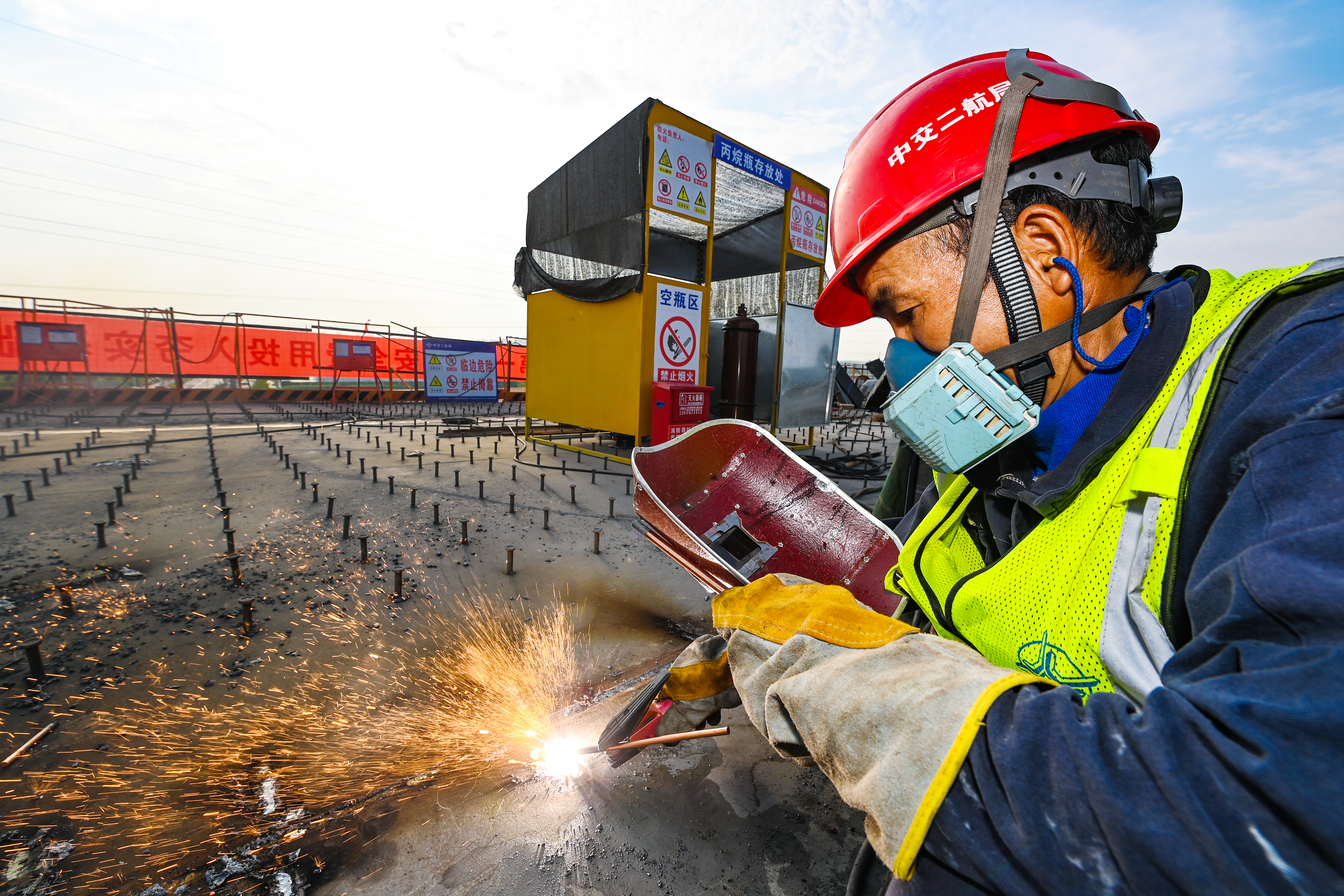 酒都路快速化改造工程施工2標段鋼結構焊接工作的一線工人吳小敏左手拿著面罩,右手拿著電焊槍,隨著“吱吱”的聲音響起,現場火花飛濺。汗水順著安全帽檐緩慢滴落,他早已習以為常,甩一甩頭,繼續(xù)作業(yè)。