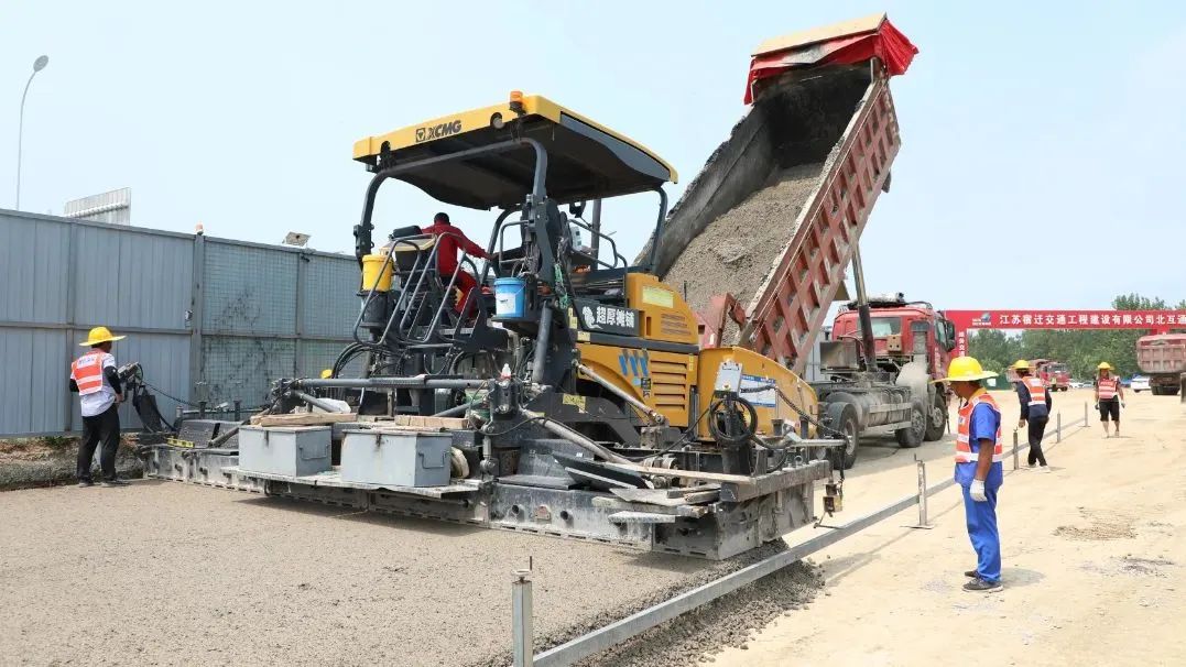 在北互通項(xiàng)目現(xiàn)場(chǎng),水穩(wěn)攤鋪工作正在如火如荼地進(jìn)行。工人們奮戰(zhàn)一線,不畏炎炎酷暑,保質(zhì)保量地推動(dòng)著項(xiàng)目的施工進(jìn)度。