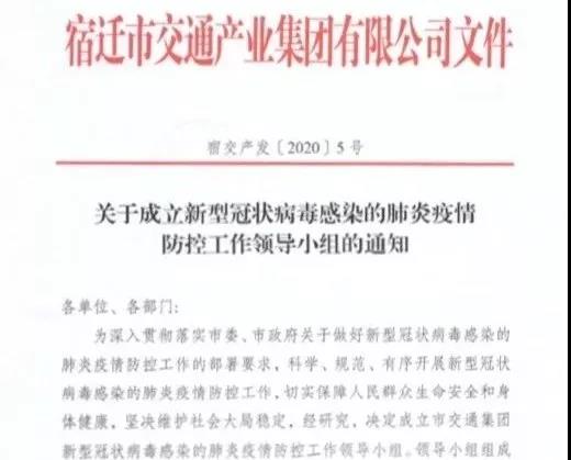 新型冠狀病毒來(lái)勢(shì)洶洶,牽動(dòng)著全社會(huì)的神經(jīng)。為加強(qiáng)新型冠狀病毒感染的肺炎疫情防控,宿遷交通集團(tuán)把保安全、保暢通、控疫情、強(qiáng)服務(wù)作為當(dāng)前工作的重中之重,第一時(shí)間行動(dòng),迅速采取措施,全力做好疫情防控和平安春運(yùn)工作。