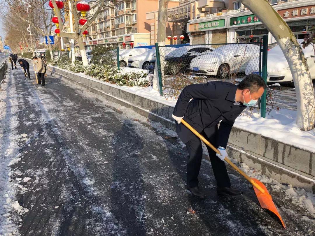 在責(zé)任區(qū)域,大家冒著嚴(yán)寒,手持鐵鍬、推雪鏟等工具,分工明確,有條不紊的開始干起來(lái)。與風(fēng)雪比耐力,跟時(shí)間爭(zhēng)速度,經(jīng)過(guò)近三個(gè)小時(shí)的努力,終于將道路上的積雪清理干凈,打了一場(chǎng)漂亮的掃雪除冰仗。既展現(xiàn)了集團(tuán)公司良好的精神風(fēng)貌,同時(shí)也有效保障了道路安全暢通,確保了市民的正常出行。