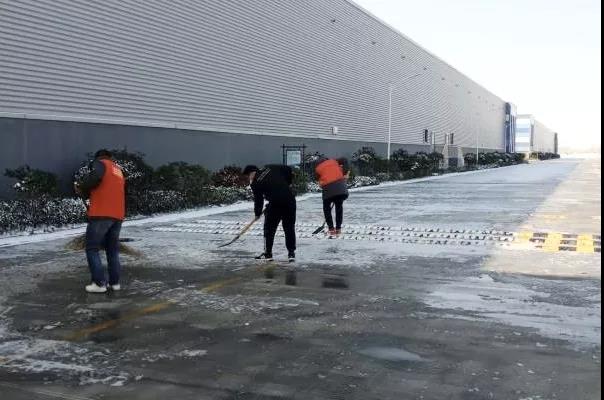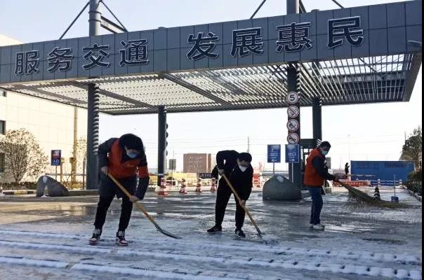 公司積極組織黨員干部職工及園區(qū)物業(yè)做好園區(qū)清雪工作,對(duì)園區(qū)各封閉出入口進(jìn)行防風(fēng)固定,在各主干道路、倉(cāng)儲(chǔ)區(qū)域和辦公區(qū)等處,撒好除雪劑并進(jìn)行融雪、除雪工作,確保復(fù)工車輛及人員出行安全。此外,疫情防控先鋒崗在做好進(jìn)出園區(qū)人員測(cè)溫、登記等工作的同時(shí),叮囑過(guò)往人員車輛減速、慢行、注意防滑。
