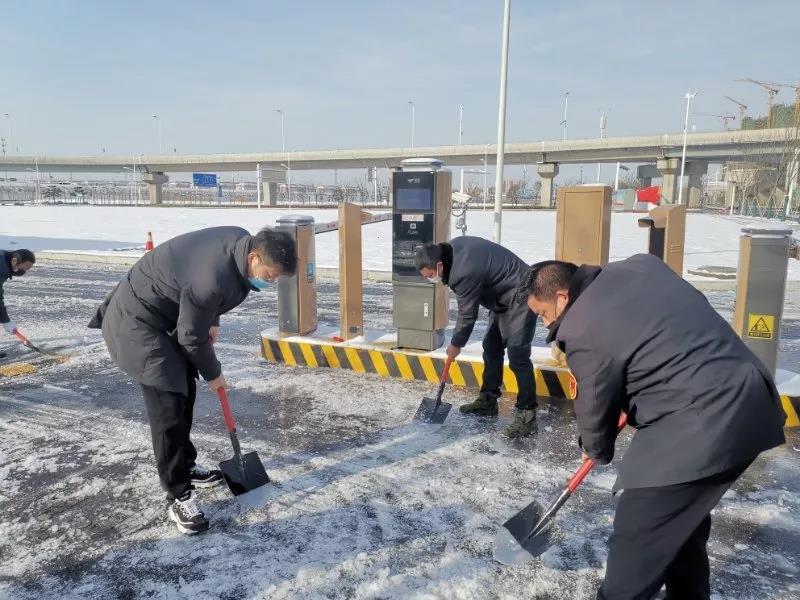 為給司乘人員創(chuàng)造安全的行車環(huán)境,確保各停車場(chǎng)進(jìn)入口暢通,從15日晚7時(shí)許,各點(diǎn)人員聞雪而動(dòng),伴隨著凜冽的寒風(fēng),奮戰(zhàn)在抗疫、掃雪一線,努力做到雪隨下隨除。截至16日上午9時(shí),經(jīng)過(guò)工作人員的不斷奮戰(zhàn),各停車場(chǎng)車道積雪全部清掃干凈,為車輛出入開辟了一條洋溢著溫情的通暢方便之路