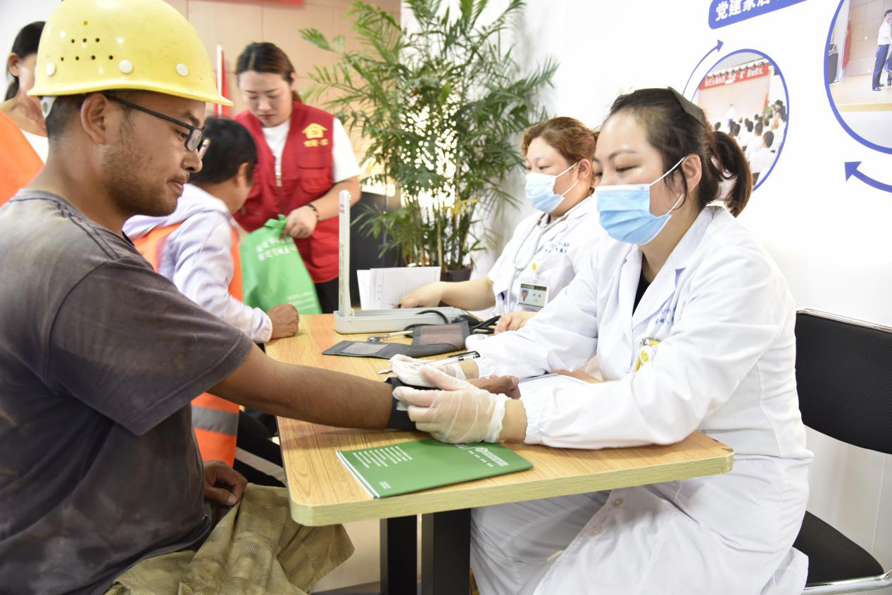 為更好地保障一線建設者身體健康,8月15日,宿遷交通集團攜手民盟宿遷市委在“黨建·家”活動中心開展“同心·送醫(yī)療”義診活動,為60余名一線建設者免費體檢。