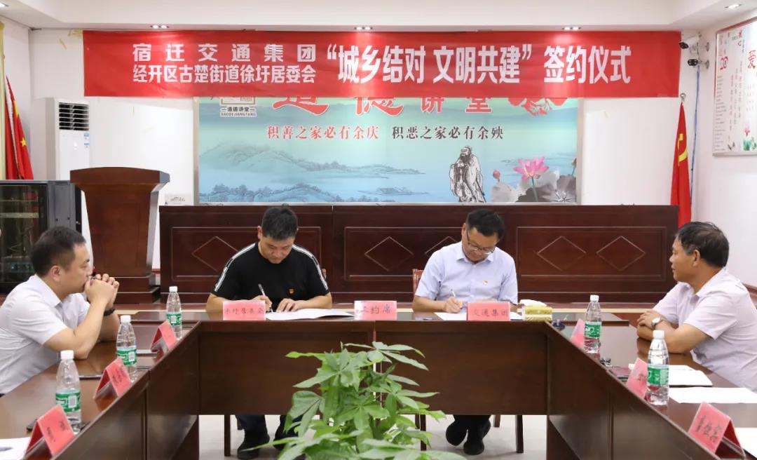 為充分發(fā)揮“江蘇省文明單位”的示范帶動作用,積極履行國有企業(yè)社會責(zé)任,助力宿遷城鄉(xiāng)文明一體化建設(shè),8月27日上午,宿遷交通集團(tuán)黨委副書記周斌一行來到宿遷經(jīng)濟(jì)技術(shù)開發(fā)區(qū)古楚街道徐圩居委會,就“城鄉(xiāng)結(jié)對、文明共建”活動進(jìn)行座談交流,并與徐圩居委會簽訂了為期3年的結(jié)對共建協(xié)議。古楚街道黨委書記董恒賓,徐圩居委會黨總支書記、居委會主任臧士振等領(lǐng)導(dǎo)參加活動。