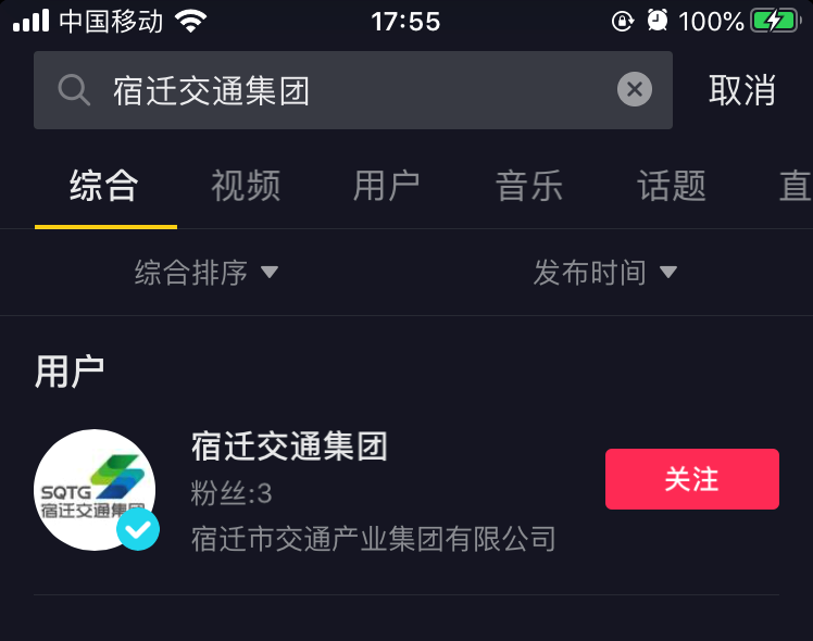 打開(kāi)抖音APP,搜索“宿遷交通集團(tuán)”