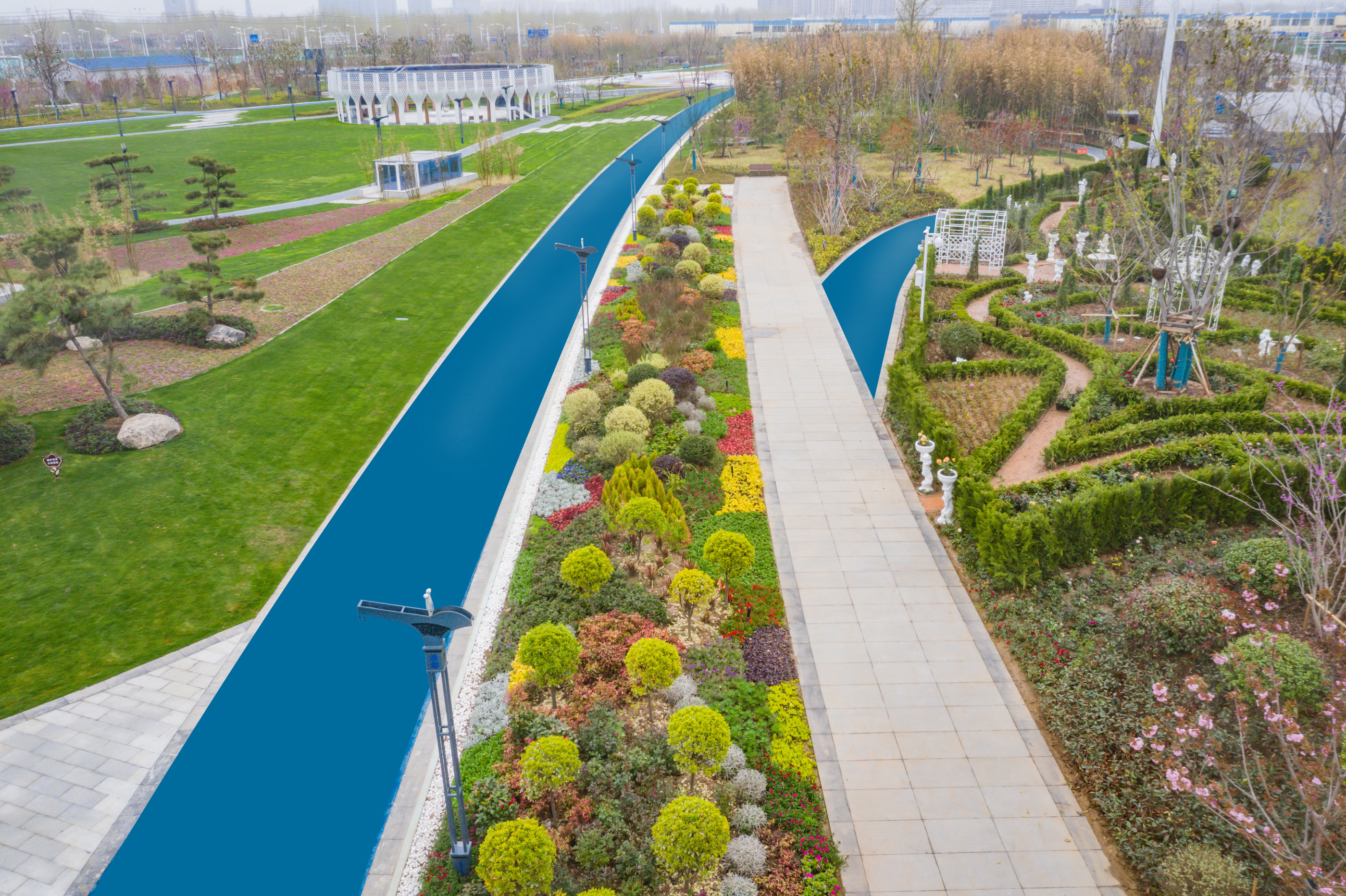 在酒都廣場有一條長1369米的“夢之藍(lán)”色瀝青道路。為了避免瀝青變色,工程項(xiàng)目部與南京工業(yè)大學(xué)等多家高校和企業(yè)合作,經(jīng)過近3個(gè)月的試驗(yàn)、觀察,最終成功研制出顏色、性能均滿足要求的混合料。這是無變色期的“夢之藍(lán)”色瀝青混合料在國內(nèi)的首次使用,體現(xiàn)了“中國酒都”的設(shè)計(jì)主題,呈現(xiàn)出賞心悅目的景觀效果,目前正在申報(bào)國家級工法。