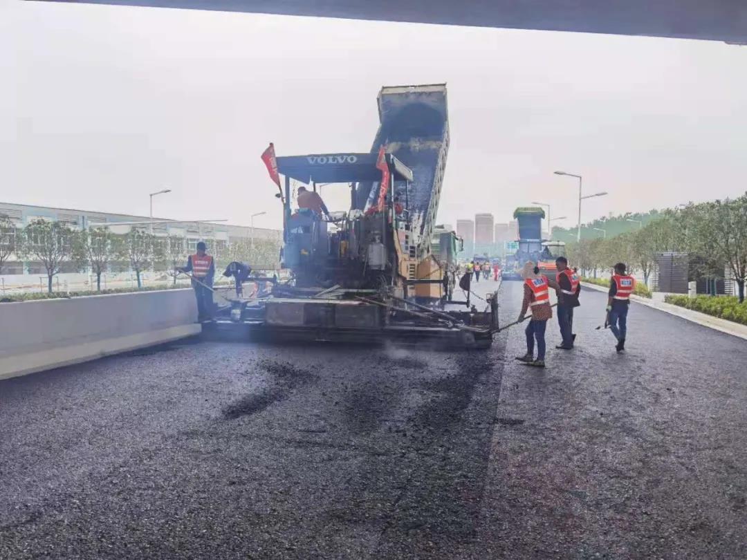 上海路(高鐵站連接線)改造二期工程正在進(jìn)行瀝青面層攤鋪