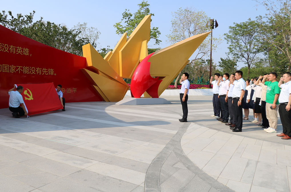 活動期間,支部黨員滿懷對革命先烈的敬意,來到宿遷“英雄園”,瞻仰英雄塑像,回顧烈士們不忘初心、舍身忘我的英雄事跡。“英雄園”廣場上,支部書記帶領(lǐng)大家整齊列隊、高舉右拳,在鮮紅的黨旗下,重溫入黨誓詞。