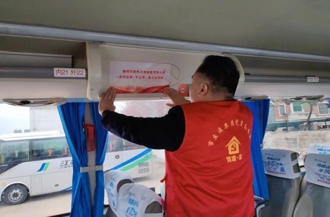 學(xué)習(xí)會(huì)上,全體人員集體觀看《領(lǐng)航:踔厲奮發(fā)》視頻,學(xué)習(xí)《習(xí)近平:為實(shí)現(xiàn)黨的二十大提出的目標(biāo)任務(wù)而團(tuán)結(jié)奮斗》等文件精神。會(huì)后,組織黨員在車(chē)內(nèi)張貼黨的二十大精神主題標(biāo)語(yǔ),“新時(shí)代的偉大成就是黨和人民一道拼出來(lái)、干出來(lái)、奮斗出來(lái)”等金句在車(chē)內(nèi)熠熠生輝,將深入學(xué)習(xí)宣傳貫徹黨的二十大精神以直觀、新穎的方式融入旅客出行環(huán)境中,把長(zhǎng)途汽車(chē)打造為宣傳黨的二十大精神的流動(dòng)課堂。